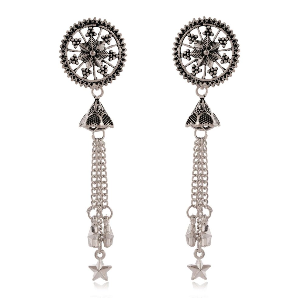 Women Traditional Silver AZ838-OXidised Jhumka Set | German Silver Chand Baliyan & Jhumkas Earrings for Women | Birthday & Anniversary Gift -AZ838-OX-ER49